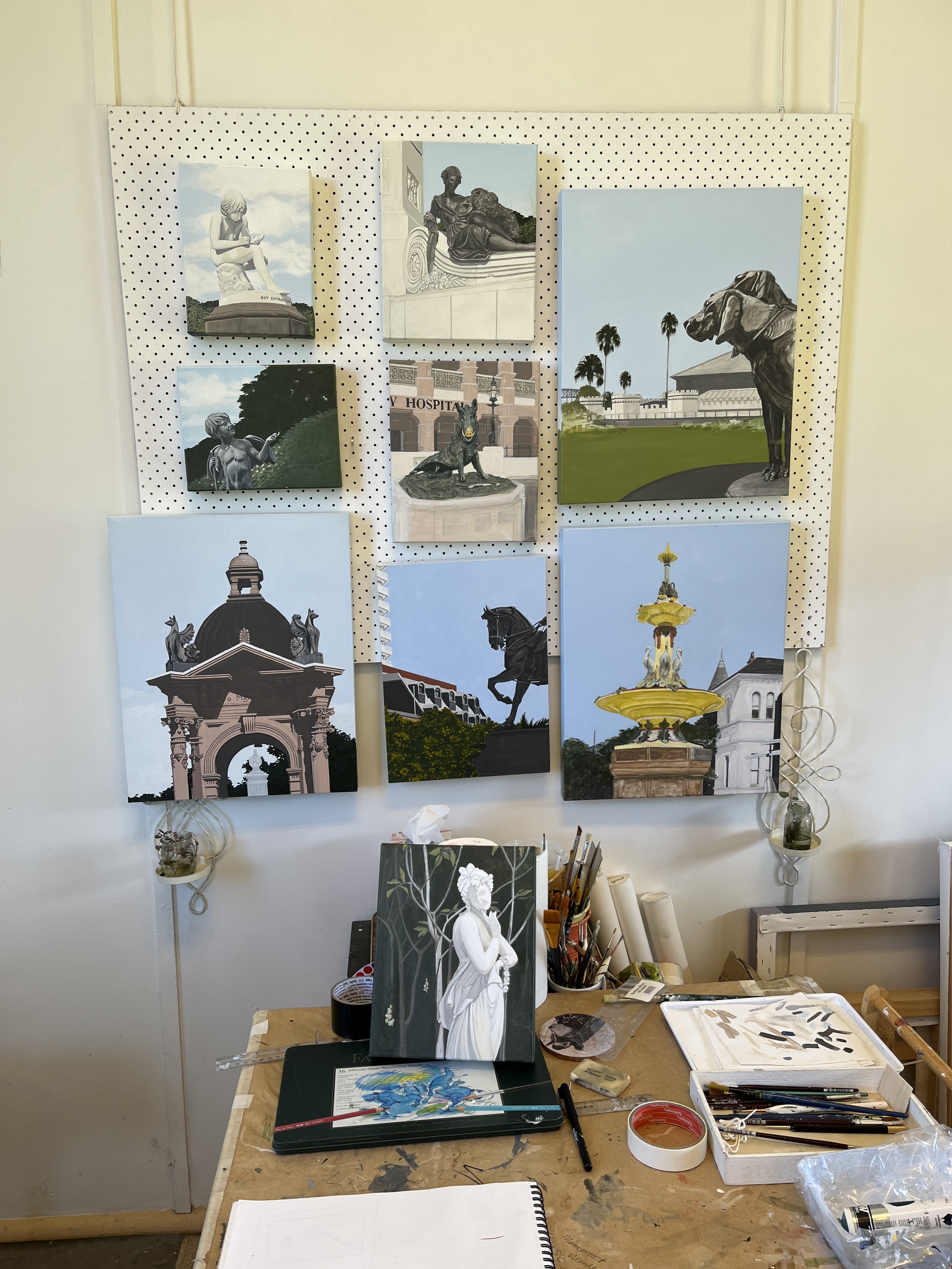 This body of work started off as CBD : Cast and Carved and has developed as glimpses of the Sydney Botanical Gardens and surrounds by way of public sculptures and architectural embellishments. I enjoyed the way the Neoclassical and Art Deco references have become part of our now familiar Sydney iconography and how some of these less prominent ( and non male military ) forms generate their own narratives.